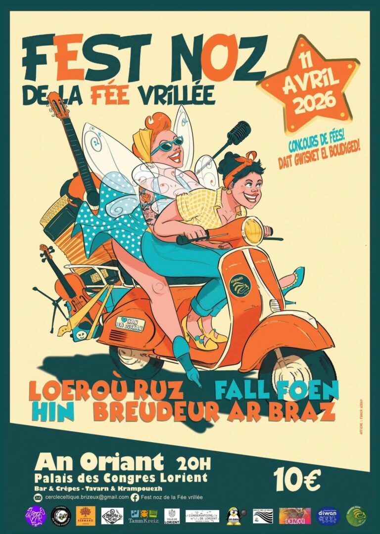A ne pas oublier le week-end prochain, le fest noz de la fée vrillée au palais des congres de Lorient , une fois n’est pas coutume , cette année, il a lieu en avril , sortez vos plus beaux costumes de fée , cadeaux à la clé